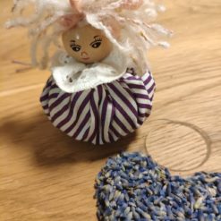 Szárított levendulavirággal töltött puttonyaimat. Selyemszatén szalaggal és selyem rózsával díszítem.