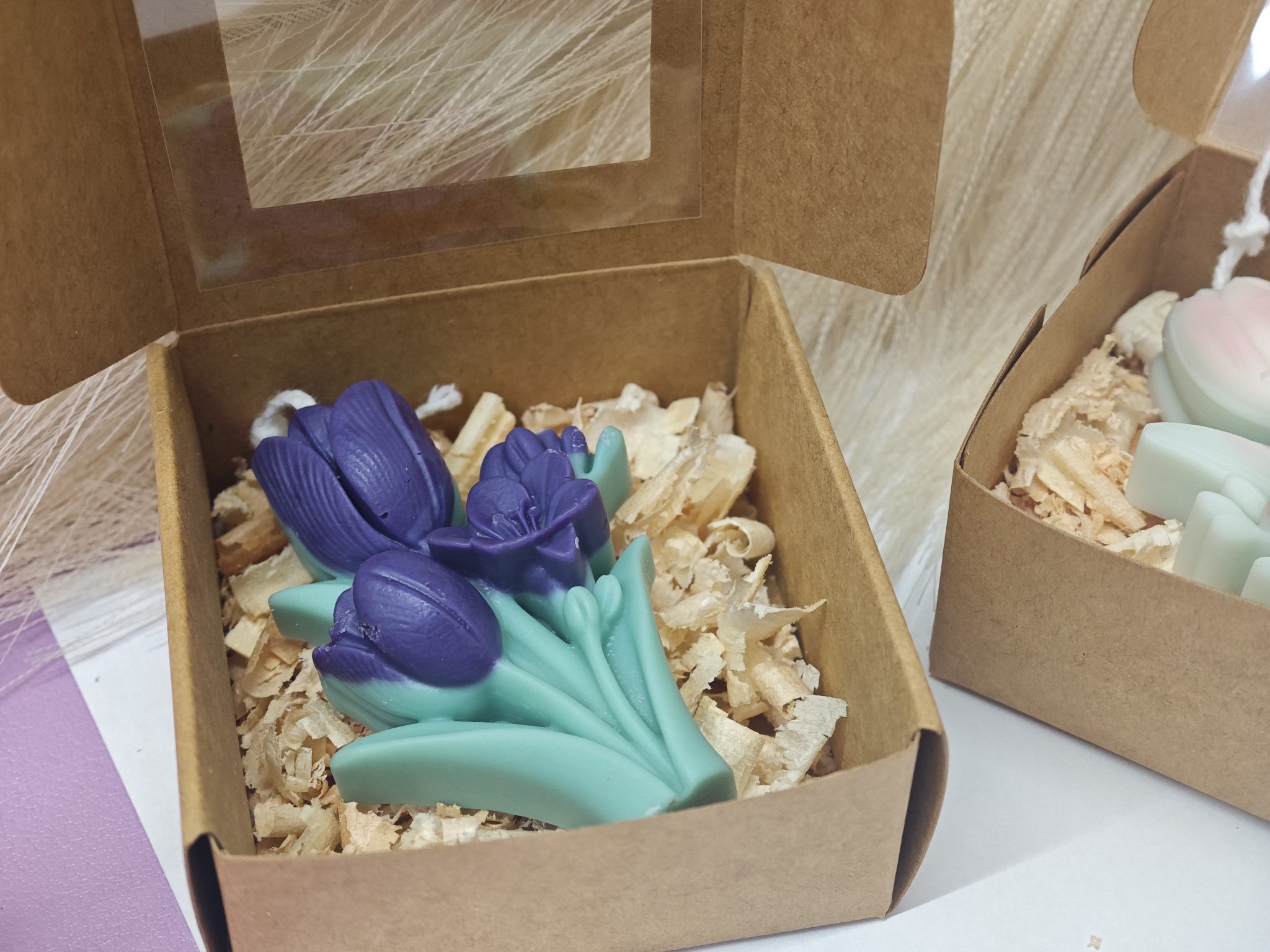 Termékleírás: Csempészd be a tavasz frissességét az otthonodba ezzel a különleges, lapos formavilágú tulipáncsokorral! Ez a gyertya nem csupán egy fényforrás, hanem egy aprólékosan kidolgozott művészeti alkotás, amely a kinyíló virágok minden szépségét magán hordozza. A lila és fehér színek harmóniája minden asztalt vagy polcot azonnal élettel tölt meg.